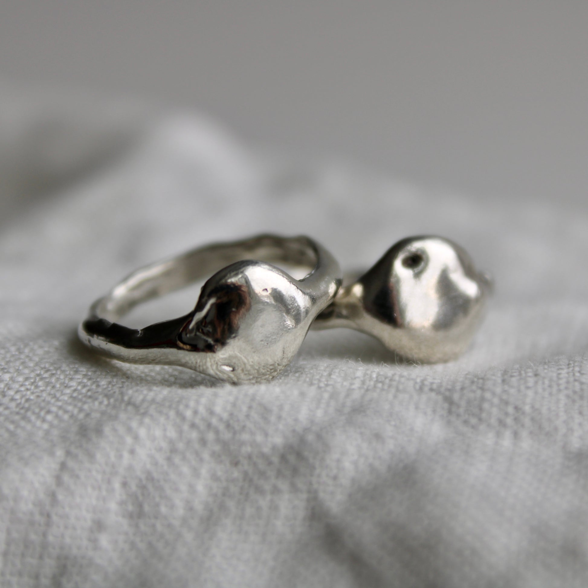 Our Organic Shaped Signet Ring is hand carved from wax and cast in sterling silver, each ring is one of a kind. No two are exactly alike—subtle variations in shape and texture make each piece feel personal and considered. Designed with soft, organic lines, it's a quiet take on a classic form.